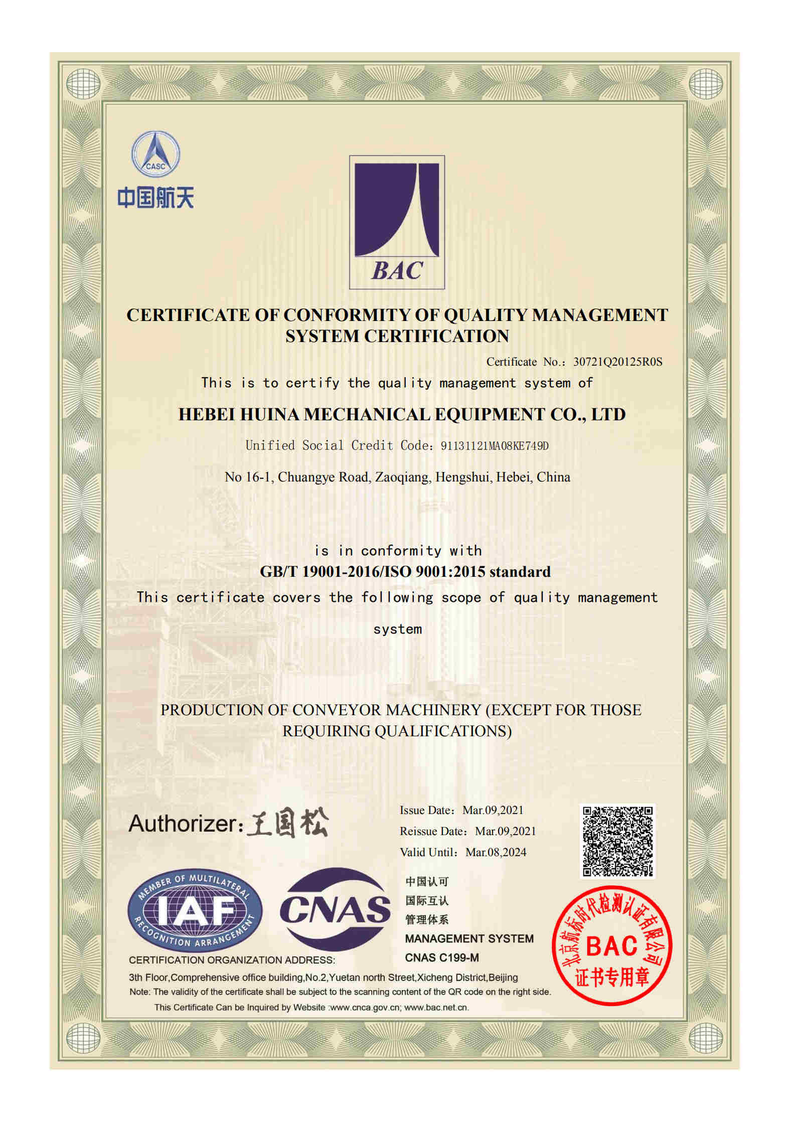 河北匯納機(jī)械設(shè)備有限公司,是一家專業(yè)從事散裝物料輸送設(shè)備的生產(chǎn)、設(shè)計(jì)、銷售為一體的科技創(chuàng)新型制造企業(yè),國(guó)家運(yùn)輸機(jī)械協(xié)會(huì)成員單位,公司董事長(zhǎng)兼總經(jīng)理曾參與國(guó)家機(jī)械輸送機(jī)行業(yè)部分技術(shù)標(biāo)準(zhǔn)的制定。公司注冊(cè)資金12660萬(wàn)元。注冊(cè)地址,河北省棗強(qiáng)縣創(chuàng)業(yè)路16-1號(hào)。